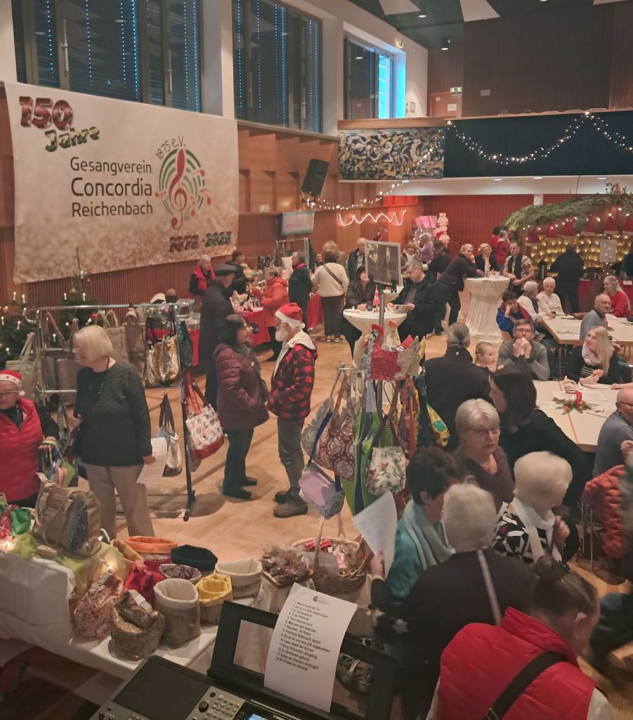 Zauberhaft dekorierte Hütten mit Speisen und Getränken sorgten für ein besonderes Ambiente. So durften sich die vielen Besucher neben Glühwein und Punsch für die Kleinen auch an Würsten, Waffeln und an leckerem Weihnachtsgebäck erfreuen. Bei der Vorbereitung dieses Events wurde aber nicht nur an das leibliche Wohl der Gäste gedacht. Künstler und Aussteller aus der Region präsentierten verschiedene weihnachtliche Dekorationen und sonstige selbstgemachte Gegenstände für den Alltag und sorgten mit ihren Ständen für ein außergewöhnliches Flair im mit liebevoll geschmückten Christbäumen und glanzvoller Beleuchtung hergerichteten Kurhaussaal. Auch der Nikolaus stattete einen Besuch ab und sorgte nicht nur bei den kleinen, sondern auch bei den großen Gästen für viel Freude. Selbstverständlich durfte beim CONCORDIA Weihnachtszauber auch das Singen der schönsten Advents- und Weihnachtslieder nicht fehlen.